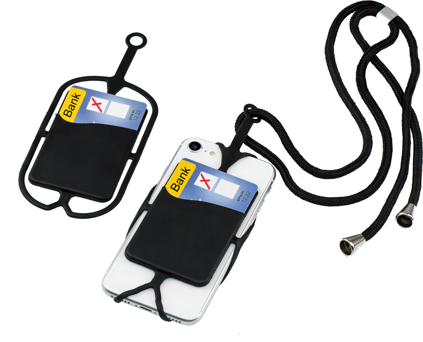"Smartphonehandtasche" bestehend aus einer längenverstellbaren Kordelkette mit Smartphonehalter inkl. Kartenfach.