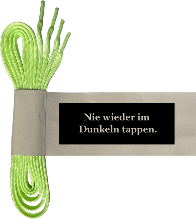 Fluoreszierende Schnürsenkel, individuell nach Kundenvorgabe gestaltbar.