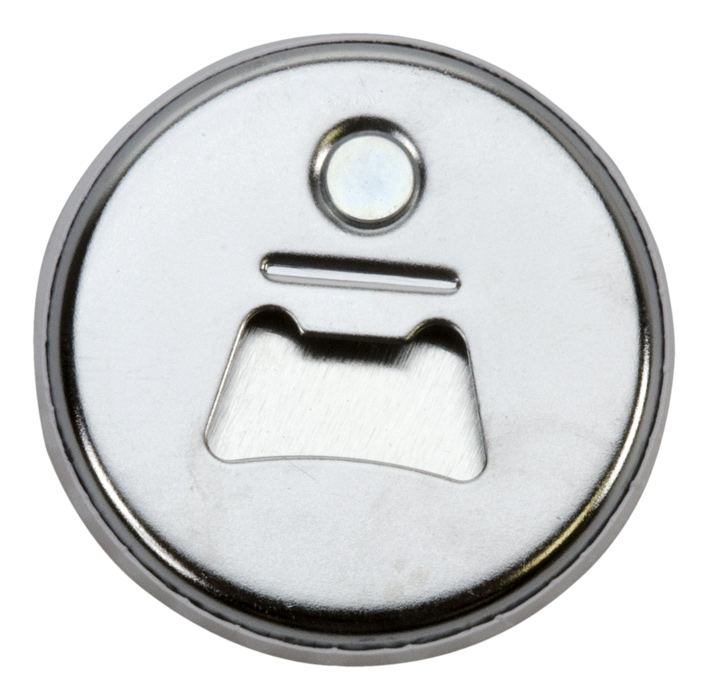 Vollflächig 4C gestaltbarer Flaschenöffner. Das ovale Modell hilft Drehverschlüsse zu öffnen und hält an jeder magnetischen Fläche - wie z. B. der (metallischen) Kühlschranktür, Pinwand, etc.