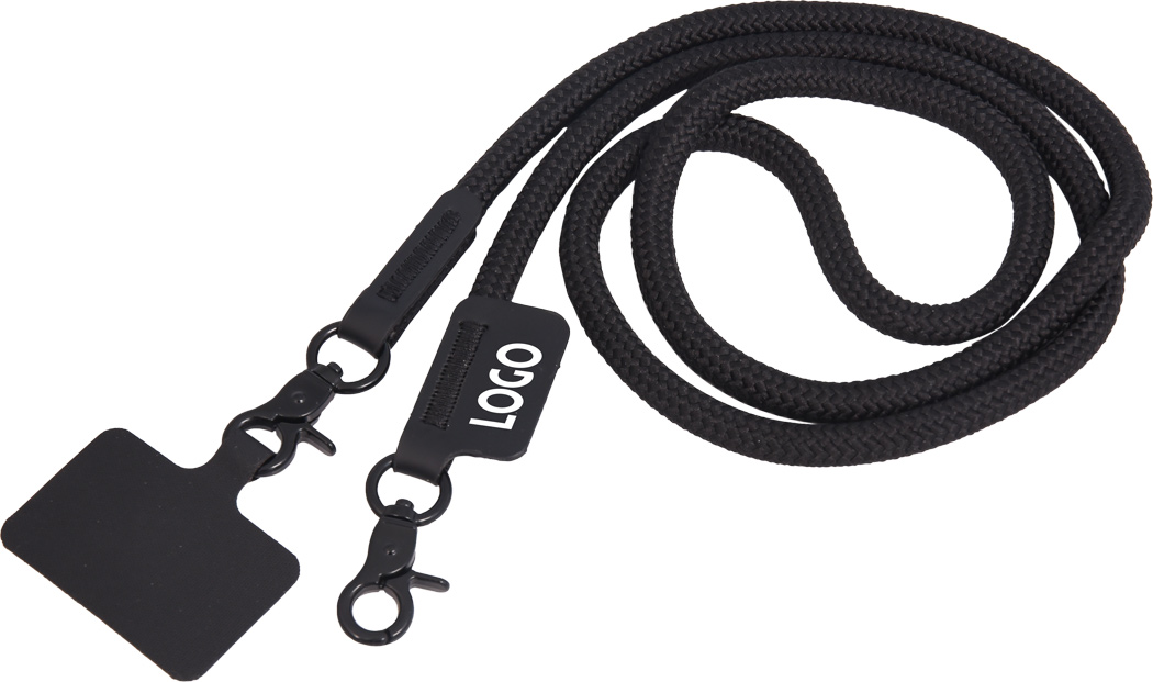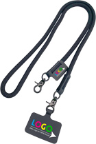 Starkes, anschmiegsames Kordelband mit PU Applikation als wertiges Accessoire für unseren wichtigsten elektronischen Alltagsbegleiter – das Smartphone.