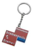 Material:Eisen geprägt, mit Schlüsselring aus MetallMaße:motivabhängig/nach KundenwunschFarben:silberfarben, goldfarben, schwarz gefärbt. Motiv glänzend, matt abgesetzt oder mit Soft-Emaille nach Pantone ausgelegt.Veredelung:Prägung mit Farbauslegung