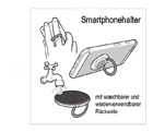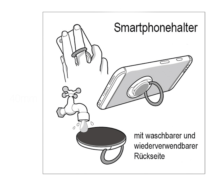 Ringhalter für die komfortable und sichere Nutzung. Als Smartphoneständer einsetzbar. Waschbare und wiederverwendbare Rückseite.