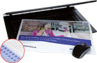Hochwertige Mikrofaser mit brillantem Druck. Rückseite: Antirutschseite mit transparenten Silikonpunkten. Als Bildschirmschutz beim Transport des Laptops, als Bildschirmreiniger und Mousepad einsetzbar.