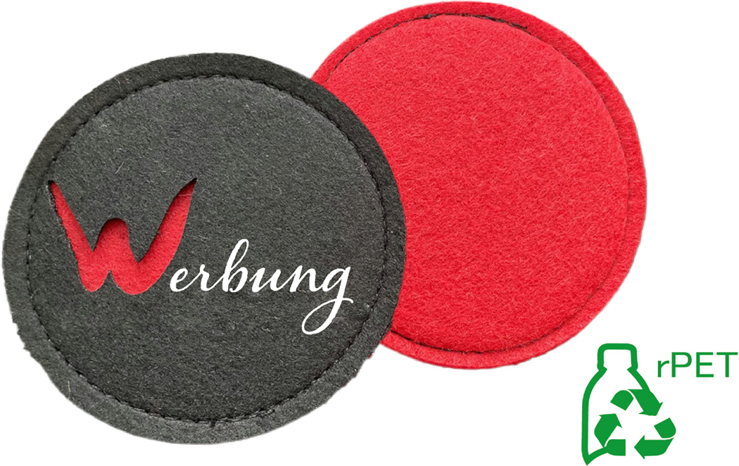 Material:100 % Polyester (rPET-Filz)Maße:Durchmesser 9 cm, 4 mm starkFarben:große Auswahl an Standard-Filzfarben. Bitte Wunschpantone-Nr. angeben, wir ermitteln den passenden Farbton.Veredelung:Stanzmotiv