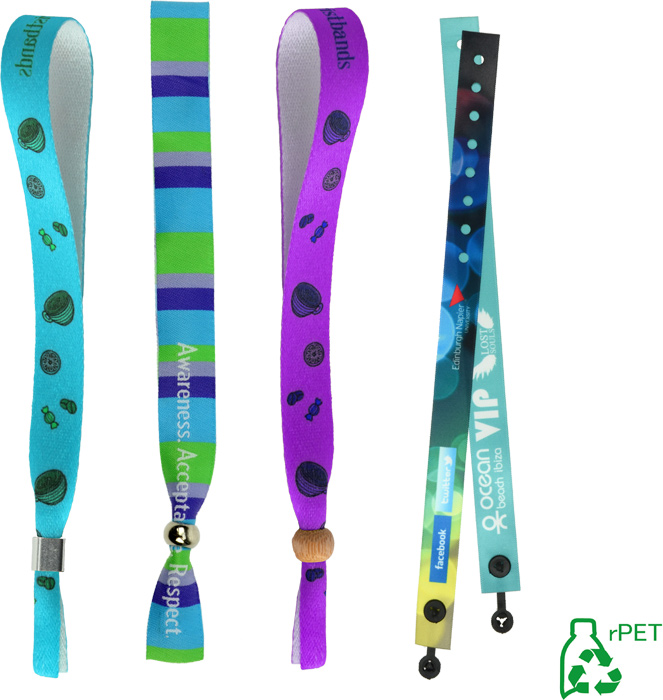 Die Markierungsarmbänder aus recyceltem PET können individuell gestaltet werden und sind mit den alternativen Verschlussmöglichkeiten für viele Gelegenheiten nutzbar.