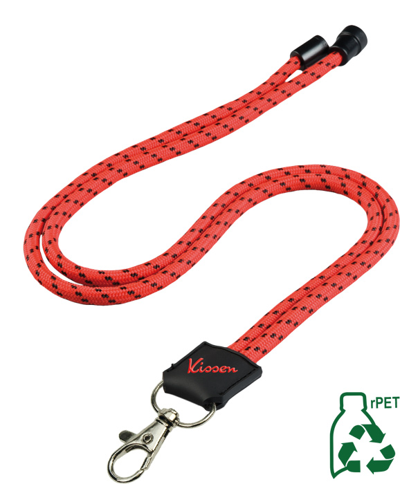 Beliebtes Kordellanyard aus recyceltem PET. Empfehlung: für die größtmögliche Sicherheit empfehlen wir die Verwendung eines Sicherheitsverschlusses
