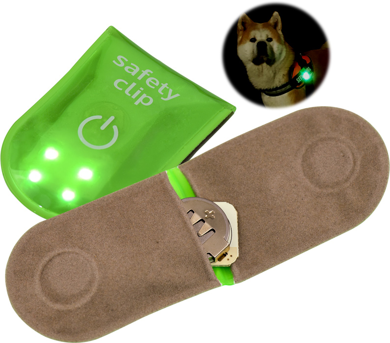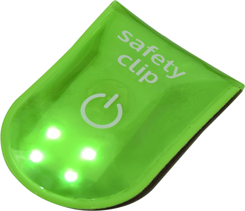 Reflektierender Leuchtclip einfach und universell an Kleidung, Taschen, Hundegeschirr etc. anzubringen. Spritzwassergeschützt. Langlebiges, energiesparendes LED Licht mit 3 Leuchtfunktionen. Einfach durch wiederholten Knopfdruck wählbar: dauerhaftes, langsames und schnelles Blinken. Inklusive einer austauschbaren Batterie.