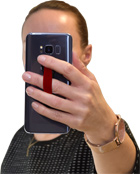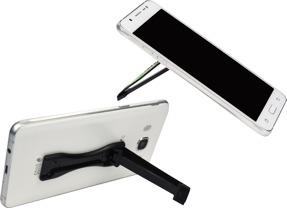 Smartphonehalter und Ständer in einem. Ermöglicht durch die erhöhte Daumenfreiheit eine bessere Bedienung des Smartphones mit einer Hand. Mit stark haftendem 3M Softschaumkleber. Rückstandslos entfernbar.