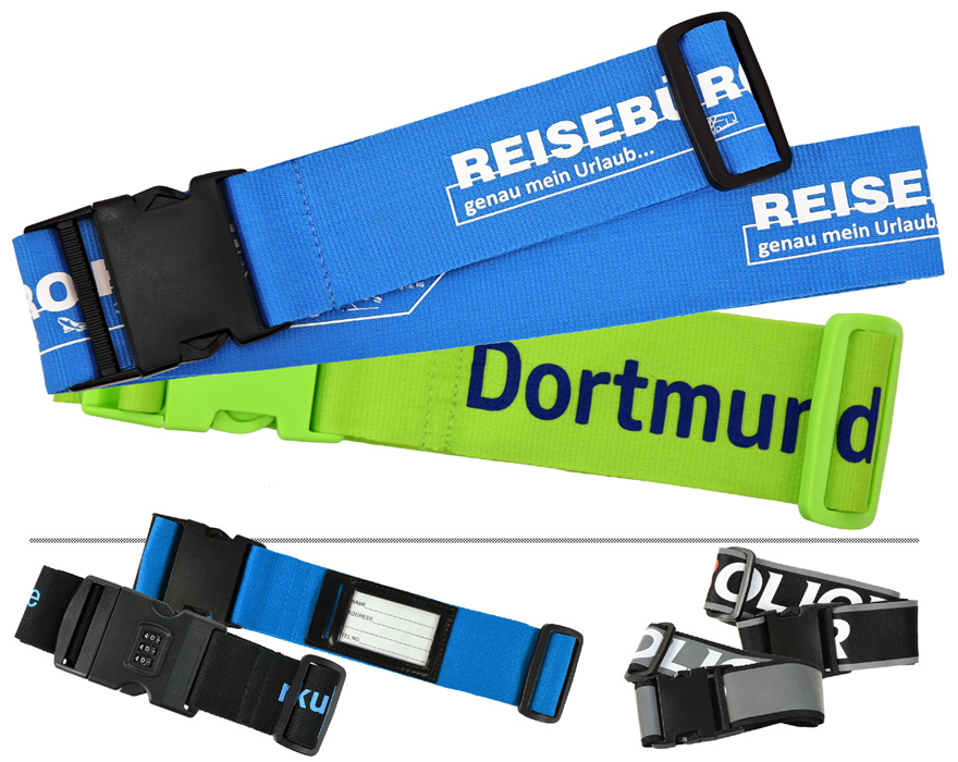 Damit auf Reisen nichts verloren geht! Auch hilfreich um das Gepäck in der Menge zu erkennen. Gegen Mehrpreis auch mit silber-grauem Reflektorstreifen - großflächig in der Mitte oder dezenter am Rand angebracht.
