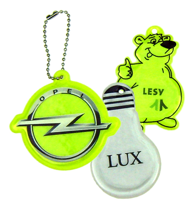 Material:PVC reflective foilSize:4 x 5 cm, or according to customer requirementsColours:great selection of standard colors. Please advise requested Pantone number, we will find matching standard color. From up to 3000 pcs. special dyeing according to PMS against surcharge.Finishing:CMYK-imprint