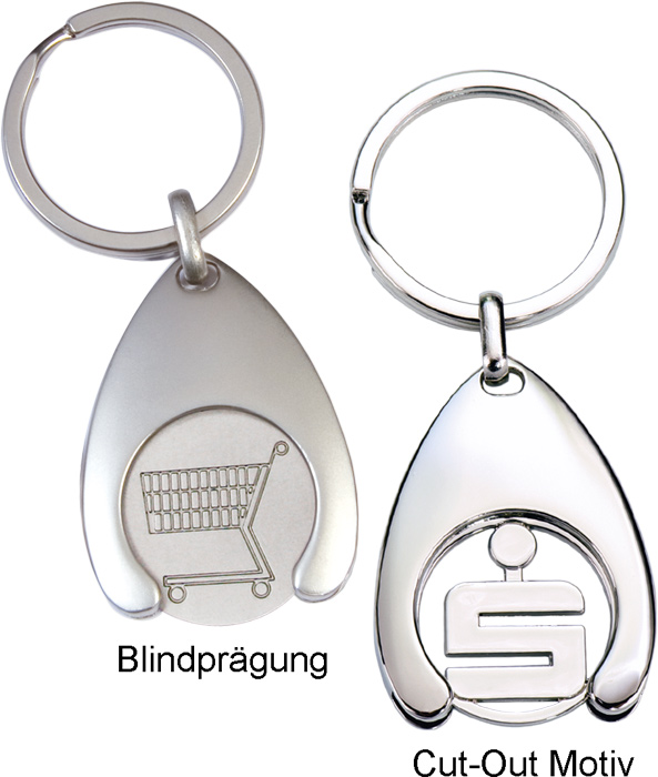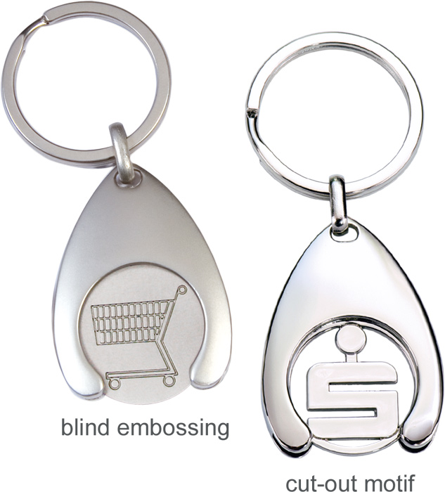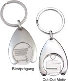Shopping trolley chip: iron stamped or zinc alloy ("cut-out coin")Size:holder: 30 x 41 x 5,2 mm