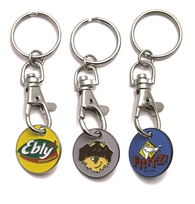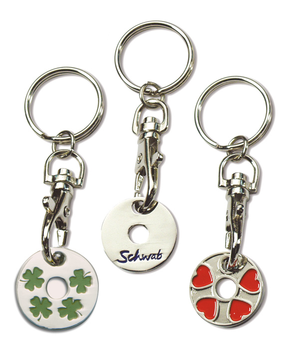 Material:trolley chip: iron, holder: metal-castingSize:chip: about 23 x 1,6 mmColours:glossy nickel-platedFinishing:blind embossing